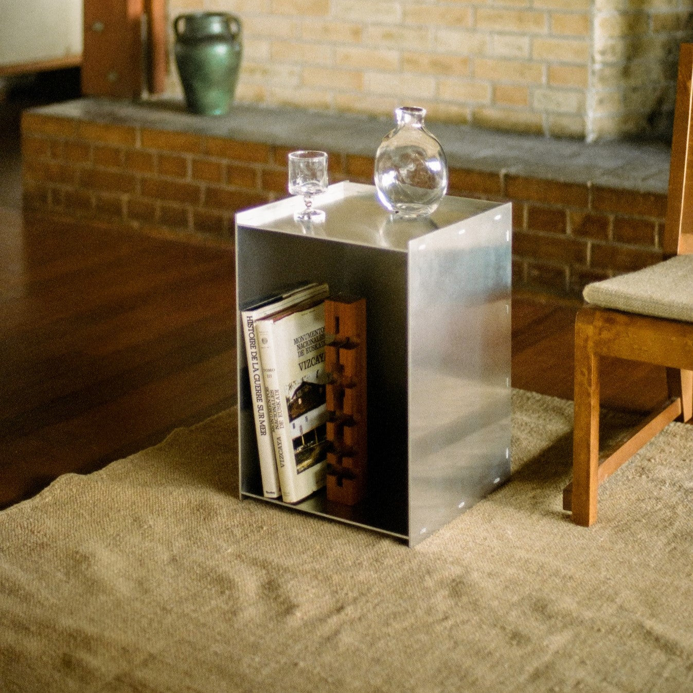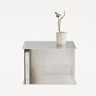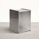 The Aluminum Rivet Box Table works as a side table, display pedestal, or bedside unit, laser-cut raw aluminum, riveted and hammered by hand, one piece at a time. No two are quite alike. A grounded, sculptural fixture for retailers, cafes, and brick-and-mortar spaces.