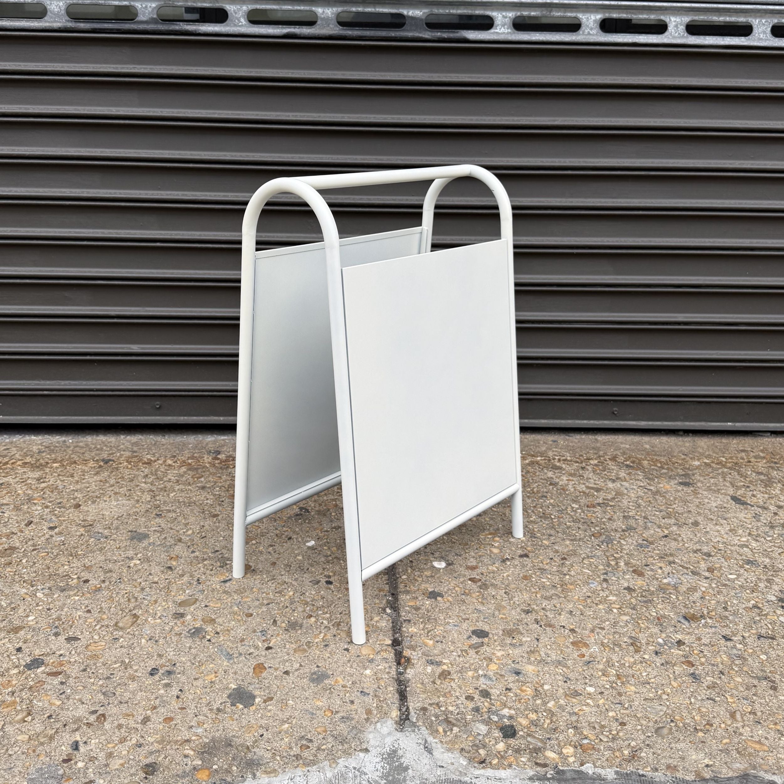 - A-Frame Sidewalk Signs – Weather-resistant stainless steel construction for high-traffic outdoor use